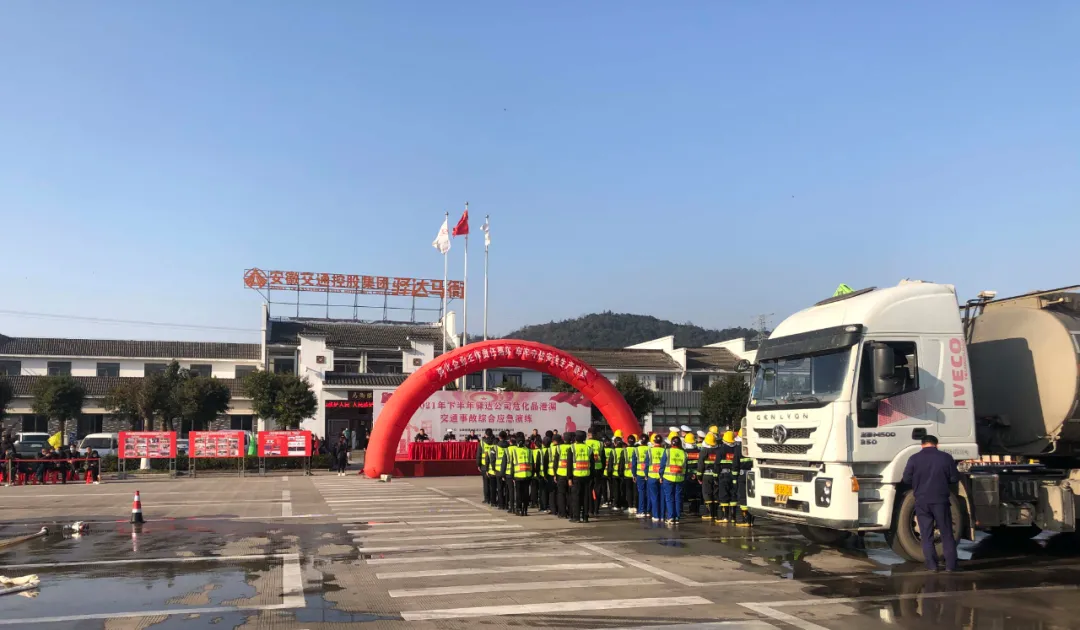 12月22日,驛達(dá)公司在馬衙服務(wù)區(qū)舉辦2021年危化品泄漏交通事故綜合應(yīng)急演練。池州市交通運(yùn)輸局黨組成員、總工程師黃兵,池州管理中心黨委書記、主任丁旭東,驛達(dá)公司副總經(jīng)理劉培泉,以及地方消防部門人員到場指導(dǎo)。相關(guān)企業(yè)、片區(qū)管理中心、服務(wù)區(qū)負(fù)責(zé)人和員工代表共計(jì)100余人現(xiàn)場觀摩。