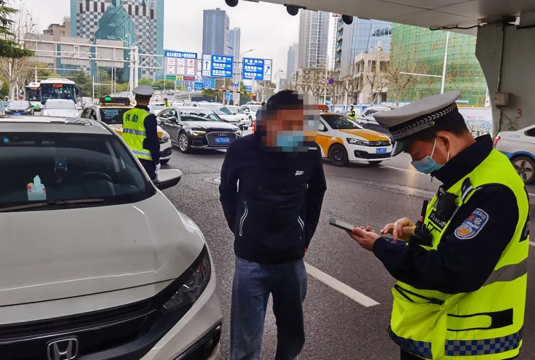 3月18日下午,在京漢大道武勝路口,硚口交警許堯、嚴(yán)木林根據(jù)手機(jī)上彈出的提示信息, 20分鐘之內(nèi)連續(xù)查獲3輛逾期未年檢的車輛,均處以罰款200元、計(jì)3分的處罰。