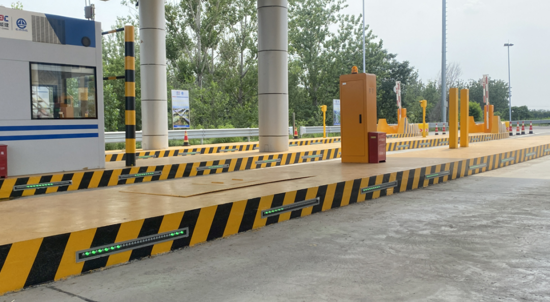 最后是“一美”,通過(guò)設(shè)備的集成、窄島化設(shè)計(jì),整個(gè)收費(fèi)現(xiàn)場(chǎng)都變得簡(jiǎn)潔美觀。同時(shí),在所有收費(fèi)島邊緣內(nèi)嵌LED跑馬燈作為路面標(biāo)識(shí),搭配集成“三合一”設(shè)備上的新型發(fā)光欄桿臂,根據(jù)收費(fèi)系統(tǒng)反饋的交易結(jié)果和車(chē)輛位置,對(duì)于通行車(chē)輛實(shí)現(xiàn)“紅停綠行、車(chē)走燈動(dòng)”的動(dòng)態(tài)指引效果,也為司乘提供了一個(gè)舒適、美觀的通行環(huán)境。