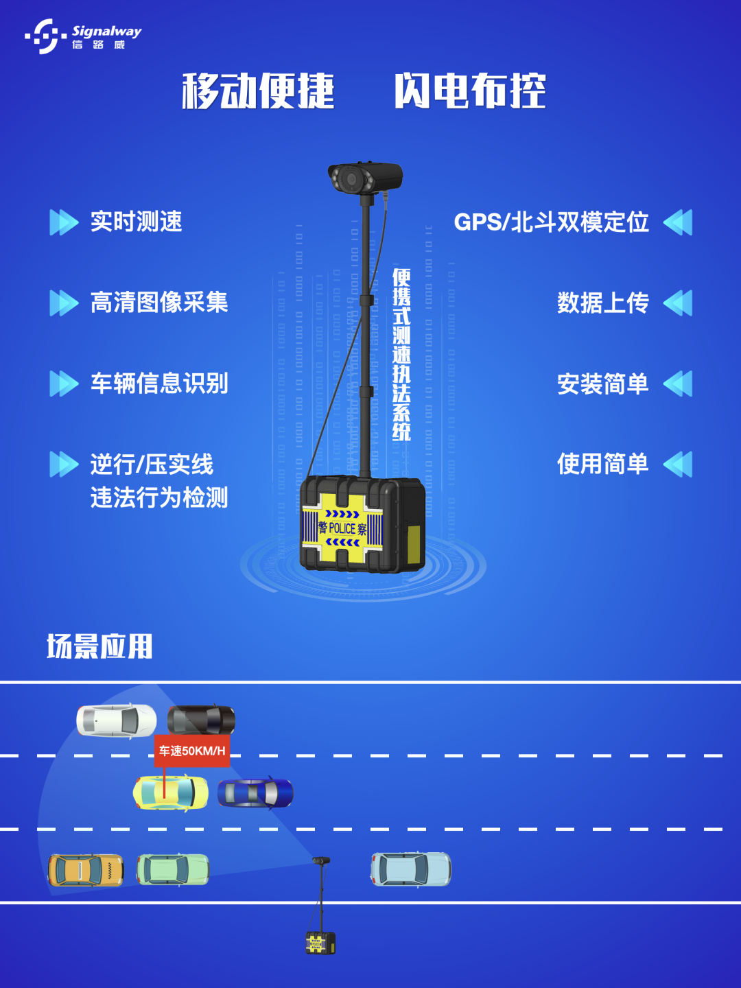 信路威固定式測(cè)速執(zhí)法系統(tǒng)主要由800萬(wàn)像素高清鏡頭、3D多目標(biāo)雷達(dá)、高性能AI處理器芯片及紅外補(bǔ)光燈等模塊組成,可實(shí)現(xiàn)車(chē)輛實(shí)時(shí)測(cè)速、高清圖像采集、車(chē)輛信息識(shí)別、GPS/北斗雙模定位、數(shù)據(jù)上傳等功能,適用于超速違法抓拍、交通數(shù)據(jù)采集等領(lǐng)域,具有分辨率高、測(cè)速精度高、穩(wěn)定可靠、安裝簡(jiǎn)單等特點(diǎn)。